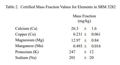有機(jī)酸和元素的認(rèn)證質(zhì)量分?jǐn)?shù)值分別在表 1 和表 2 中提供。 NIST 認(rèn)證值是 NIST 對其準(zhǔn)確性具有最高置信度的值,因為所有已知或可疑的偏差來源都已被調(diào)查或考慮在內(nèi) [1]。價值分配分析由 NIST 和合作實驗室進(jìn)行。認(rèn)證值計算為 NIST 方法的平均值和合作實驗室提供的平均結(jié)果的中位數(shù)(如果適用)。相關(guān)的不確定性以大約 95% 的置信水平表示 [2-4]。