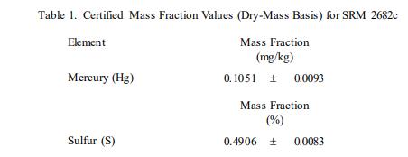 表 1 中提供了汞和硫的認(rèn)證值,以基于干質(zhì)量的質(zhì)量分?jǐn)?shù) [1] 表示。NIST 認(rèn)證值是 NIST 對其準(zhǔn)確性有最高置信度的值所有已知或可疑的偏差來源都已被調(diào)查或考慮 [2]。認(rèn)證值是對真實(shí)值的當(dāng)前最佳估計(jì)。